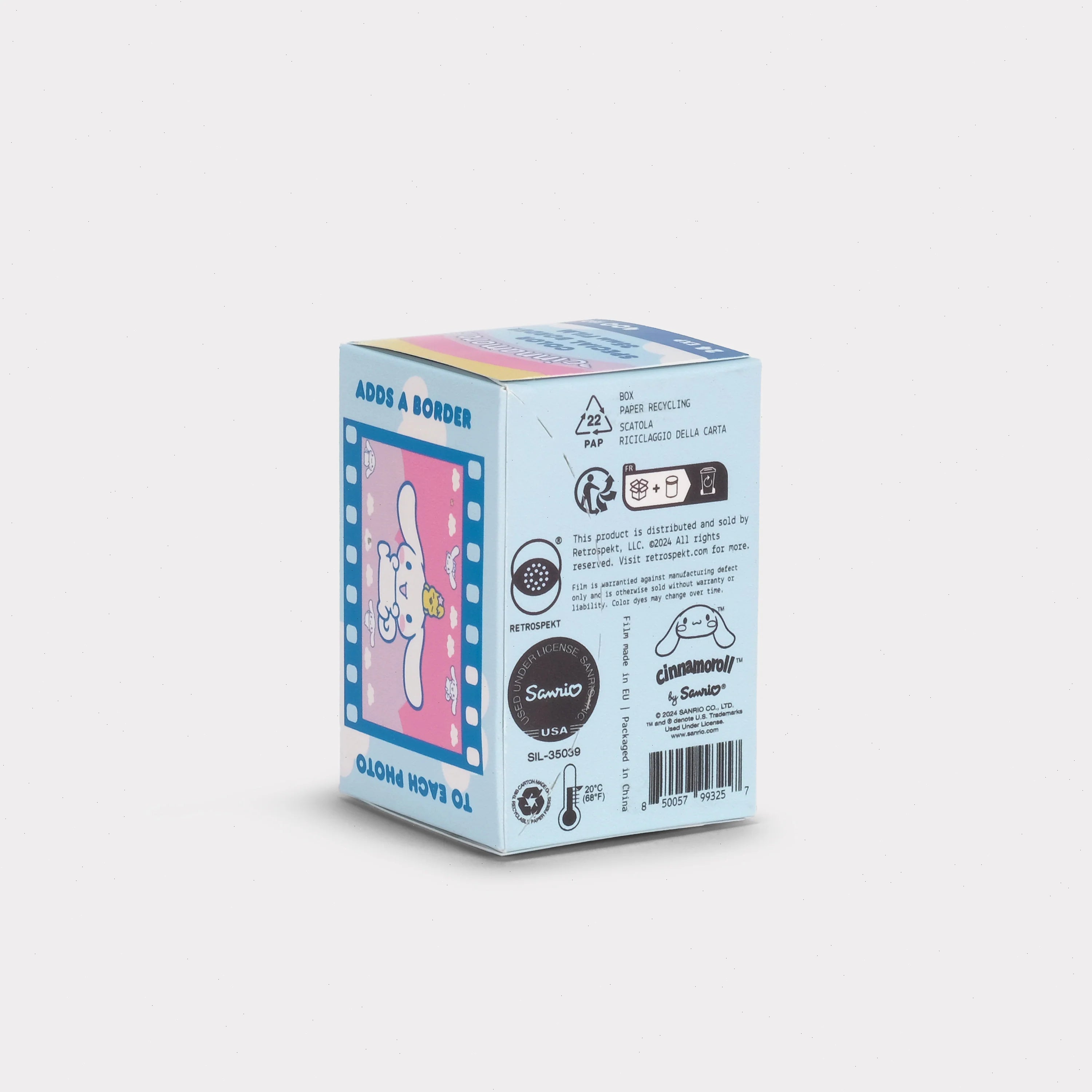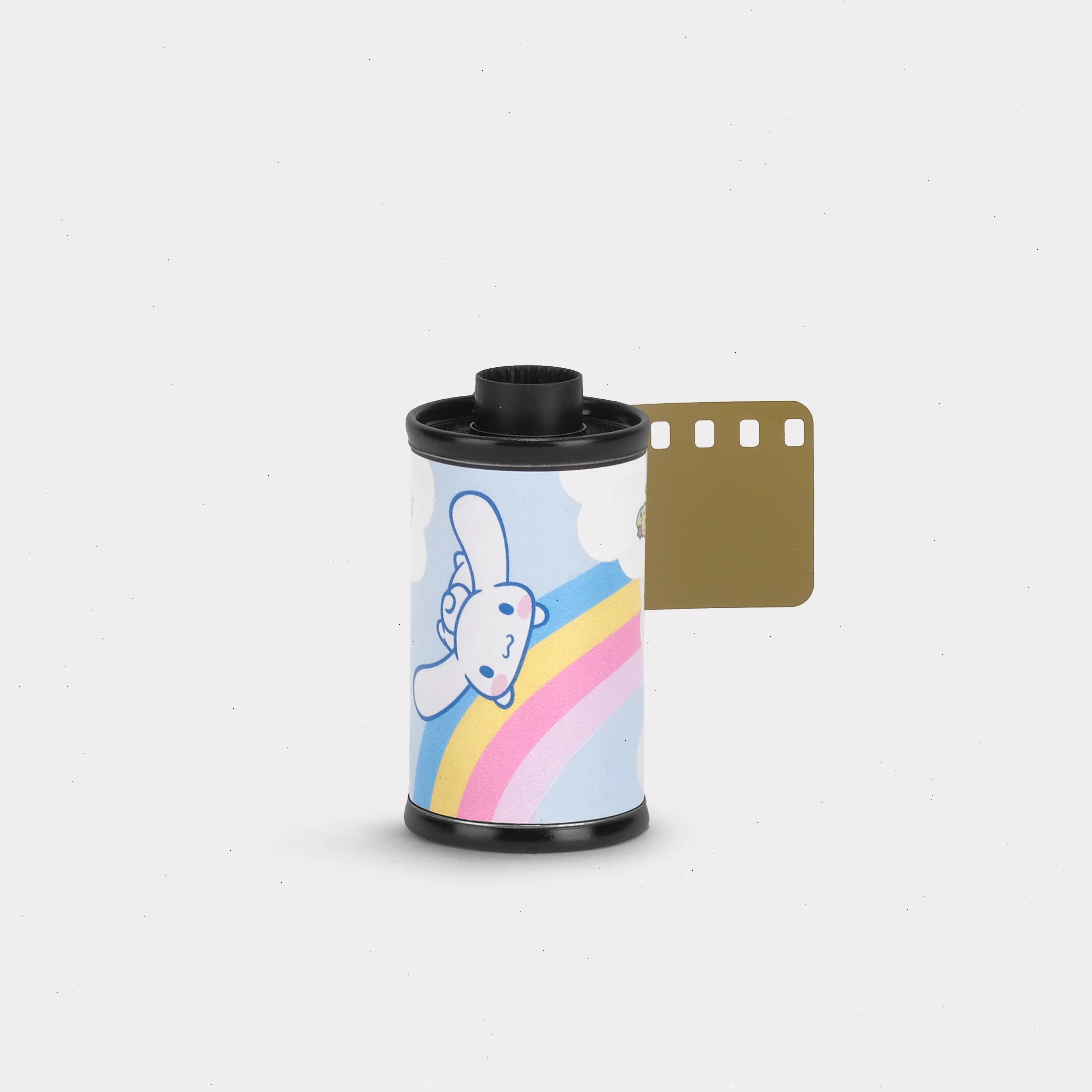 This extra special batch of Cinnamoroll 35mm film allows anyone with a film camera to get in on the fun. Each roll has 24 exposures of color, 400 ISO, 35mm film with a continuous graphic pre-exposed directly onto the film roll. The border runs along the top and bottom edge of the film and features Cinnamoroll amongst the clouds to wonderfully complement each of your images.