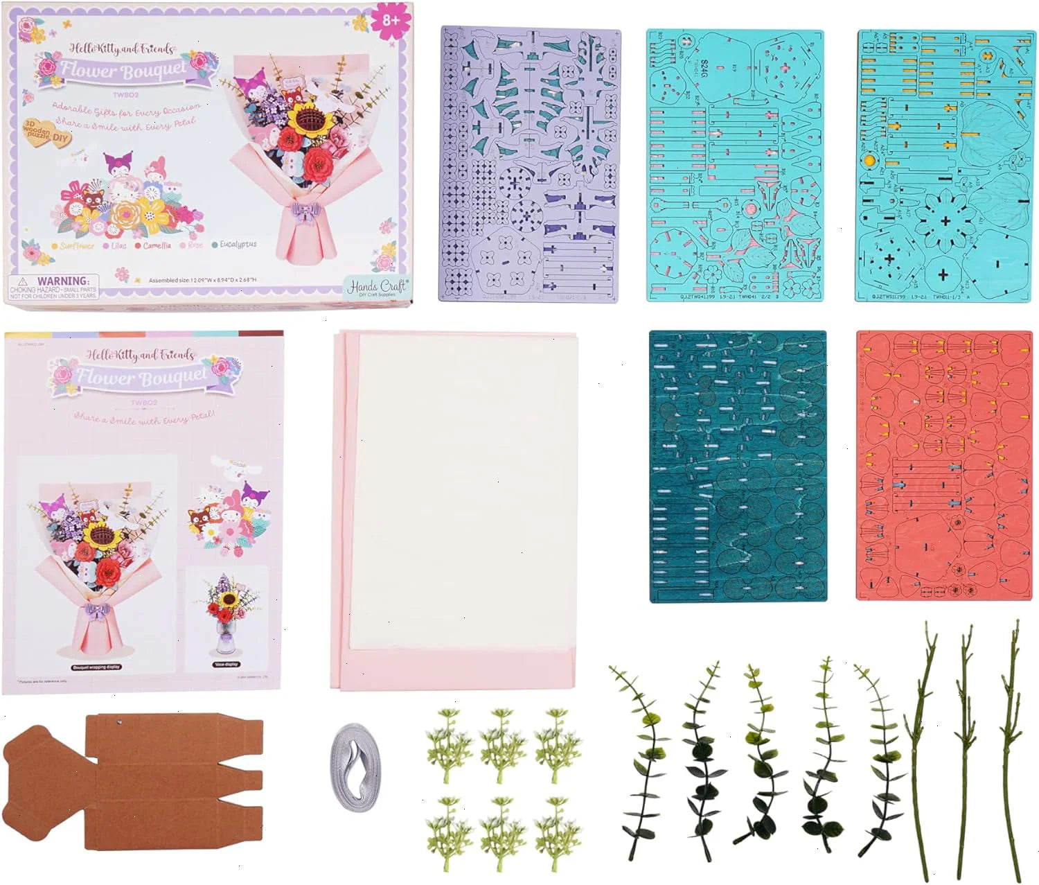 Bring a splash of joy and creativity to your home with the Hello Kitty and Friends 3D Wooden Flower Puzzle Bundle! This delightful set features intricately designed wooden flower pieces that can be assembled into a charming bouquet with Kuromi, Cinnamoroll, My Melody, Chococat, Keroppi, and, of course, Hello Kitty herself.