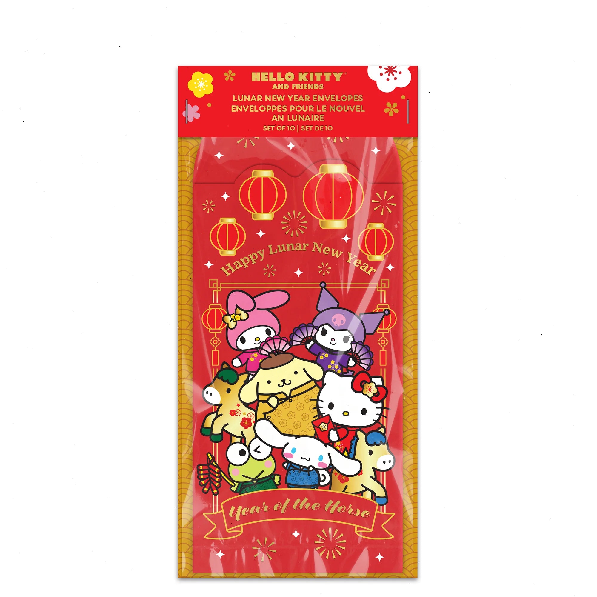 Happy Lunar New Year everyone! Hello Kitty and Friends come ushering in good luck and absolute cuteness, celebrating the Year of the Horse! This set of 10 envelopes, features rich character artwork plus gold accents that are sure to wish loved ones hope and happiness for the new year!
