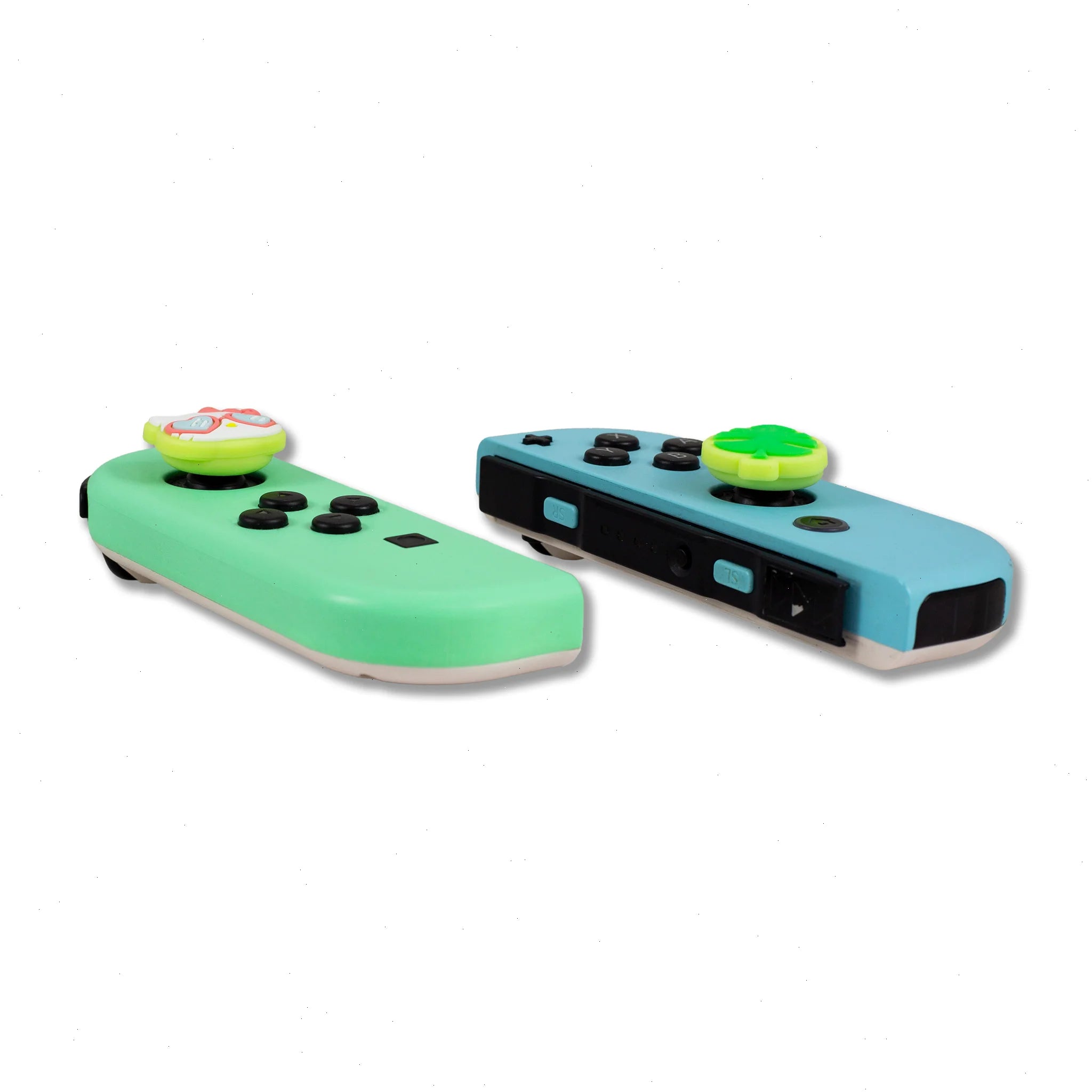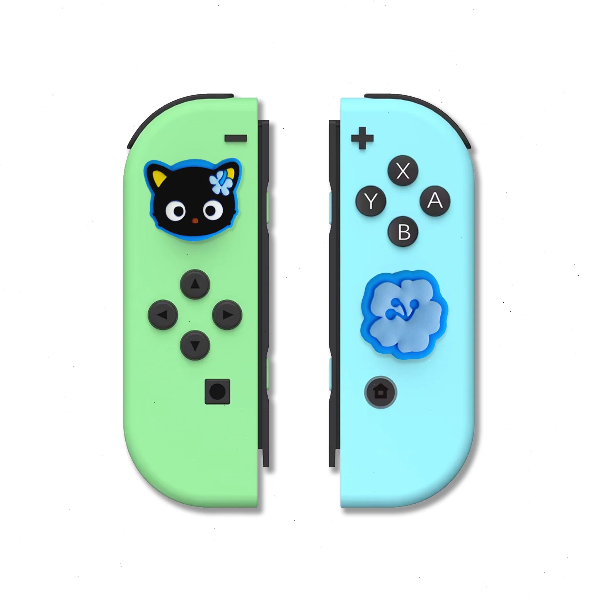 Elevate your gaming experience with a boost of cuteness from Hello Kitty and Chococat! This grip cap 4-pack features Hello Kitty Island Adventure-themed artwork and a fun way to extend your Nintendo Switch™ game play with comfort and anti-slip friction. Each cute and comfy thumb grip is crafted from soft and durable silicone to support hours of fun gaming!