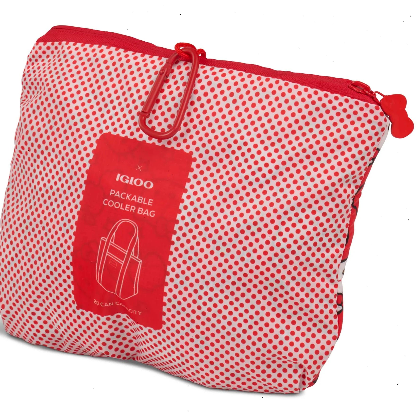 Make every day a fun adventure with Hello Kitty! Just take this Packable Puffer along — a travel-friendly, compressible cooler bag (it packs into its own front pocket!) featuring a supercute Hello Kitty screenprint that includes her favorite fruit: Red apples!